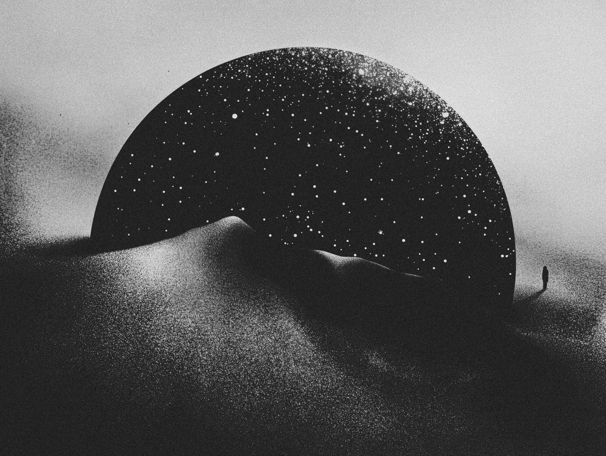 Could I turn an internal, psychedelic experience into visual work? Not to exhibit. Not to sell. But to see if something so intangible, emotional topography, memory distortion, weightless space, could become image.